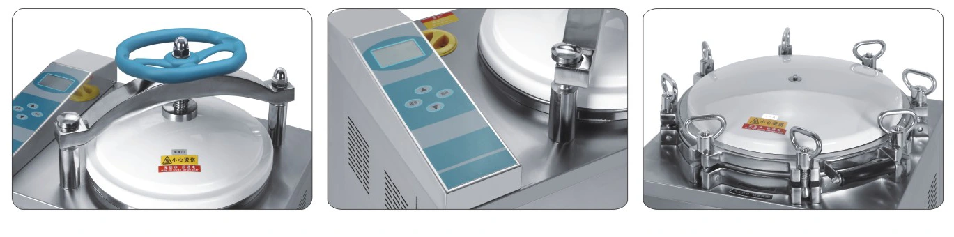 Vertikalaus slėgio garo sterilizatoriai komplektuojami su šildymo sistema, mikrokompiuteriu valdoma sistema, apsaugos nuo perkaitimo ir per didelio slėgio sistemomis, kurios yra patikimos dėl sterilizavimo efektų, yra patogios eksploatuoti ir taupo energiją. Jie tinka sterilizuoti įrangą, tvarsčius, konteinerius, skysčius, kultūrinę terpę, atliekas ir kt. ligoninėse, ligų kontrolės centruose, PP2 ir kraujo tyrimų centruose, klinikose. institutai.